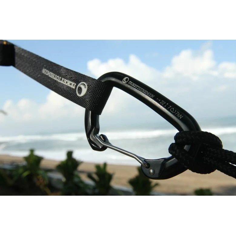Ein Set aus 2 Ticket To The Moon Aluminium-Karabinern mit einer Tragkraft von 2200 kg sorgt für ein einfaches und sicheres Aufhängen Ihrer Hängematte.