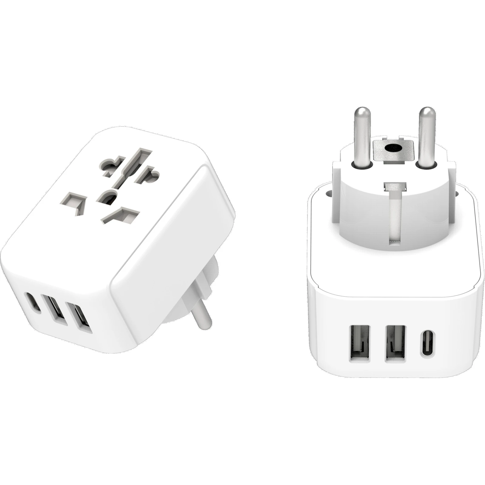 Der World to Europe Travel Adapter mit USB (& USB C) der Marke Lifeventure ermöglicht die Nutzung ausländischer Stecker in Europa. Der Adapter ist sehr benutzerfreundlich, leicht und kompakt. Der Adapter verfügt außerdem über drei USB-Anschlüsse 5 V (2x USB 2.0, 1x USB C) zum Laden elektronischer Geräte.