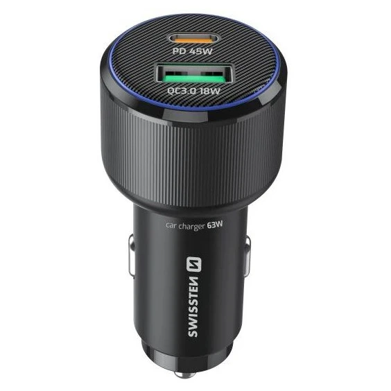 Swissten Car Charger USB-C PD + USB-A, 63W + cabel USB-C / USB-C, 1 m