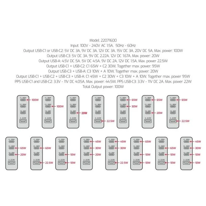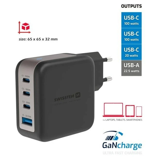 Adapter Swissten World Travel Charger 65W GaN USB-C + USB-A