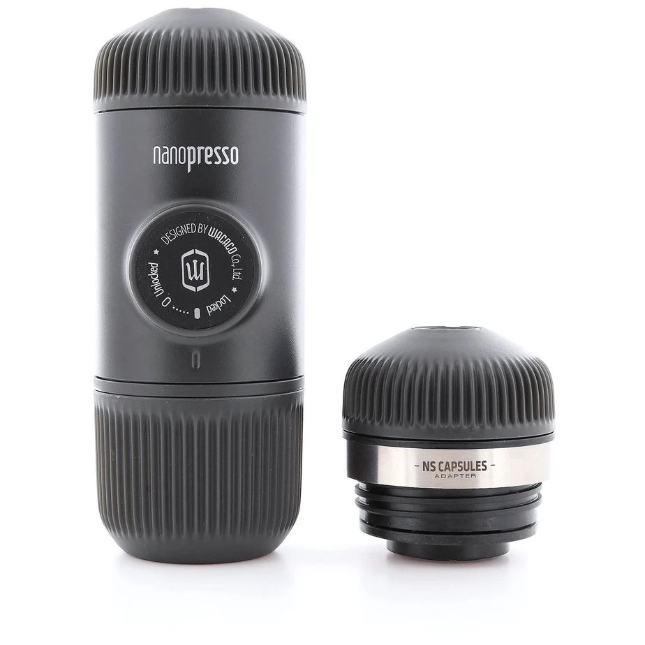 Der Nanopresso Kaffeemaschinen-Adapter Wacaco ermöglicht Ihnen den Genuss von Nespresso Kaffeekapseln überall, unterwegs oder in der Natur. Einfach auf die Nanopresso Reisekaffeemaschine Wacacoschrauben, Kapsel einlegen und mit der Kaffeezubereitung beginnen. Die Bedienung ist einfach und macht die Kaffeezubereitung unterwegs noch einfacher.