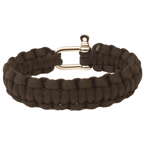 Dieses handliche Paracord-Armband der Firma Highlander besteht aus 2,85 m langer hochwertiger Nylonschnur, die bis zu 249 kg Gewicht tragen kann. Das Armband lässt sich im Handumdrehen lösen und zum Bau eines Unterschlupfs, zum Abseilen im Notfall oder auch einfach zum Wechseln der Schnürsenkel verwenden. Jeder Abenteurer kann sich die unendlichen Möglichkeiten dieses Accessoires vorstellen und gleichzeitig wissen, wie nützlich es ist, für den Notfall ein Stück Schnur oder mittlerweile ein Seil dabei zu haben.