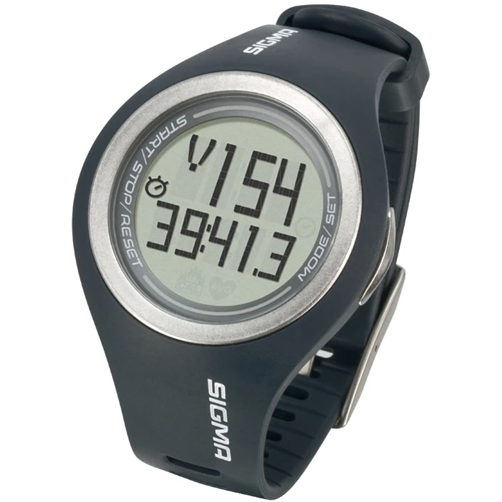 Der Herren- Sporttester PC 22.13 Man der deutschen Sportartikelmarke Sigma ist ideal für Sportler, die ihre Herzfrequenz während des Trainings möglichst genau überwachen möchten. Sie können es zum Trainieren, Gehen, Laufen und für andere Aktivitäten verwenden. Sie können sie wie eine klassische Uhr jederzeit am Handgelenk tragen. Zur Pulsmessung dient der mitgelieferte Brustgurt mit STS-Sensor, der die Messwerte mittels digital codiertem Signal überträgt und die aktuelle Herzfrequenz anschließend auf dem übersichtlichen Display der Uhr mit der Genauigkeit eines EKG-Gerätesanzeigt. Die digitale Übertragung ist präzise, sicher und schützt das Signal vor Störungen. Neben dem aktuellen Status wird die gemessene Herzfrequenz gespeichert und deren Durchschnitts- sowie Maximalwert kann angezeigt werden. Sporttester verfügt über voreingestellte Zielzonen, die Sie ganz nach Ihren Wünschen anpassen können. Anschließend wird auf dem Display die Zonenanzeige angezeigt und ein akustisches Signal macht Sie darauf aufmerksam, wenn Ihre Herzfrequenz unter die Zonengrenze fällt oder Sie die Zone überschreiten. Anhand der Messdaten berechnet der Sporttester die Anzahl der verbrannten Kalorien und zeigt diese an.