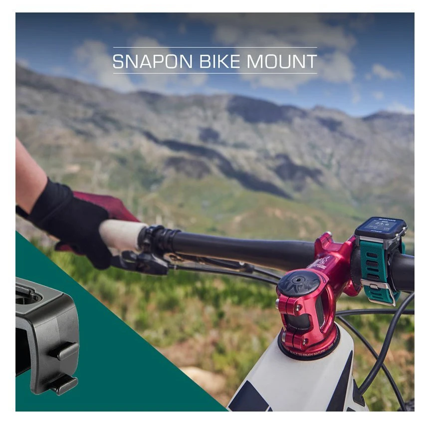 Besonders praktisch für Triathleten und Radfahrer ist die Lenkerhalterung SnapOn Bike Mount. Damit lässt sich die Uhr auch während des Rennens schnell und einfach am Lenker befestigen, sodass der Rennfahrer alle wichtigen Werte während der Fahrt zur Hand hat.