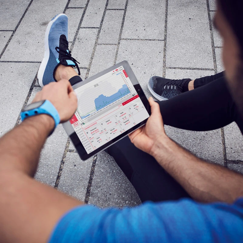 Der Sporttester ist in einem Silikonarmband untergebracht, das den ganzen Tag über bequem zu tragen ist. Eine stabile Doppelschnalle mit Schloss verhindert, dass sich der Gurt löst. Den Akku des Sporttesters können Sie ganz einfach über das mitgelieferte USB-Kabel aufladen. Die Akkulaufzeit beträgt bis zu 14 Tage ohne eingeschaltetes GPS und bis zu 6 Stunden mit eingeschaltetem GPS.