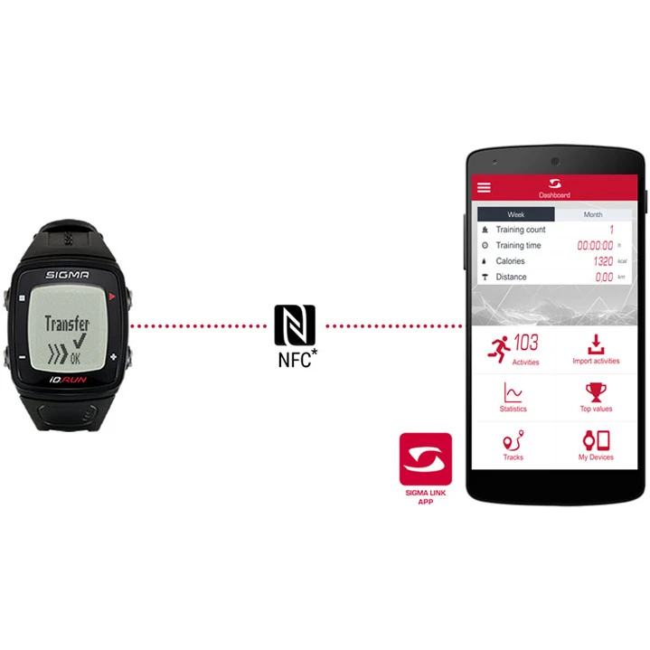 Sporttester iD.RUN der deutschen Sportartikelmarke Sigma ist eine einzigartige Kombination aus einer klassischen Sportuhr und einem derzeit sehr beliebten Fitnessarmband. Es ist außerdem mit GPS ausgestattet und mit der Funktion zur Verfolgung Ihrer Route ist es besonders für Läufer ideal. Der GPS-Empfänger wertet die zurückgelegte Distanz und Geschwindigkeit aus und zeigt diese präzise an. Anschließend können Sie im PC-Programm Data Center oder in der mobilen Anwendung Sigma Linkalles übersichtlicher anzeigen, entweder per drahtloser NFC-Übertragung oder über das mitgelieferte USB-Kabel. Beide Anwendungen werden automatisch über die Sigma Cloud synchronisiert, sodass Sie auf beiden Geräten ständigen Zugriff auf Ihre Daten haben. Das Lauftraining kann in automatische oder benutzerdefinierte Runden unterteilt werden. Es können bis zu 99 Runden mit Zeit- und Distanzangaben aufgezeichnet werden. Genauere Informationen zu den Schaltungen stehen Ihnen dann in den angeschlossenen Anwendungen zur Verfügung.