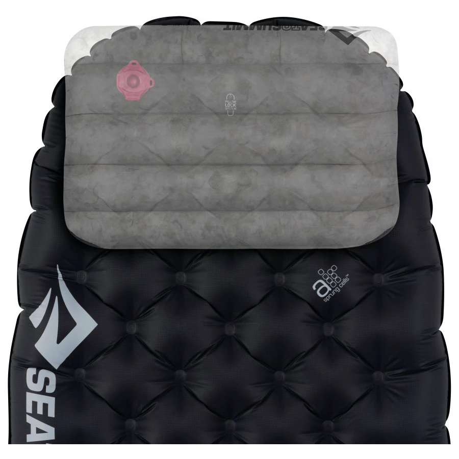Ein interessantes Feature der Sea to Summit Isomatten ist das PillowLock™-System, welches es ermöglicht Reisekissen der gleichen Marke auf der Isomatte zu befestigen und so für angenehmen Schlaf ohne Verrutschen des Kissens zu sorgen. Im Lieferumfang enthalten sind ein Reparaturset und eine Transporttasche für die Airstream™-Pumpe, die auch als aufblasbare Tasche verwendet werden kann.
