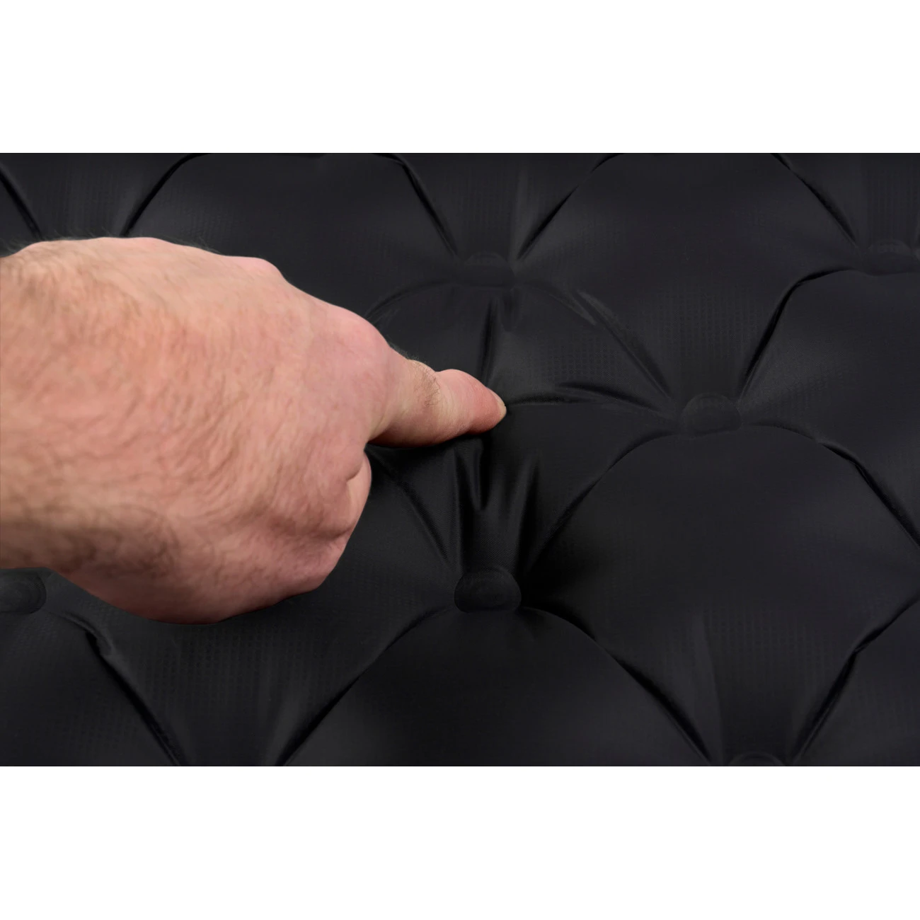 Ergänzt wird diese Konstruktion durch eine Schicht doppeltdichter Thermolite -Isolierung. Nach dem Aufblasen füllt die Isolierung die Luftbläschen und verhindert so Luftbewegungen innerhalb der Isomatte. Dadurch wird der Wärmekomfort deutlich verbessert. Die 10 cm dicke Isomatte trägt zudem zu maximalem Wärmekomfort selbst an den kältesten Tagen bei. Das Außenmaterial der Isomatte besteht aus leichtem und griffigem Nylongewebe (30/40D), welches Sie dank seiner Geräuscharmut beim Wenden nicht durch Rascheln stört.