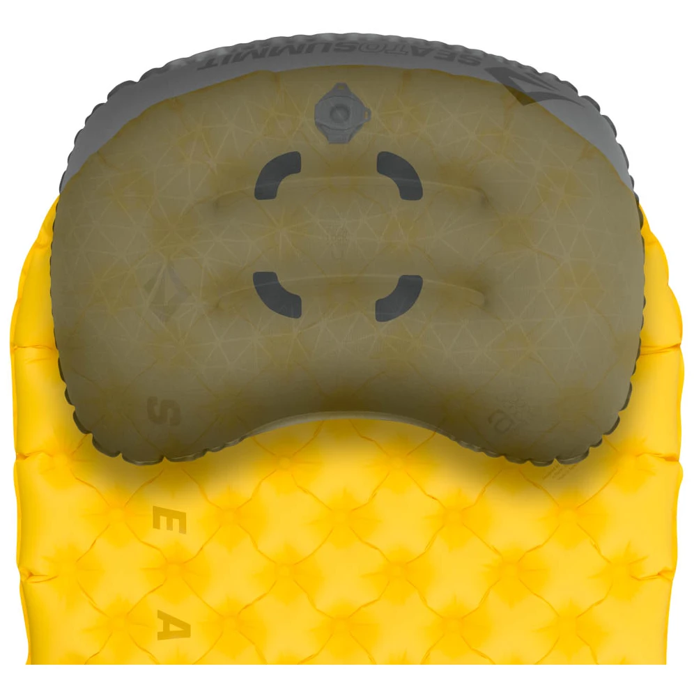 Ein interessantes Feature der Sea to Summit Isomatten ist das PillowLock™-System, welches es ermöglicht Reisekissen der gleichen Marke auf der Isomatte zu befestigen und so für angenehmen Schlaf ohne Verrutschen des Kissens zu sorgen.