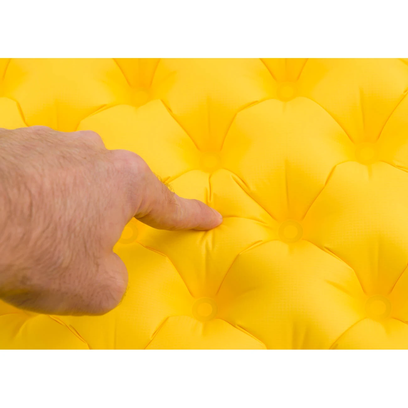 Zum hohen Liegekomfort trägt auch die Dicke der Isomatte von 5 cmbei. Das Außenmaterial der Isomatte besteht aus leichtem und griffigem Nylongewebe (30/40D), welches Sie dank seiner Geräuscharmut beim Wenden nicht durch Rascheln stört. Ergänzt wird dieser Stoff durch eine extrudierte TPU-Laminierung , die Delamination vorbeugt, sowie eine antibakterielle Ultra-Fresh®-Behandlung, die Schimmelbildung vorbeugt.