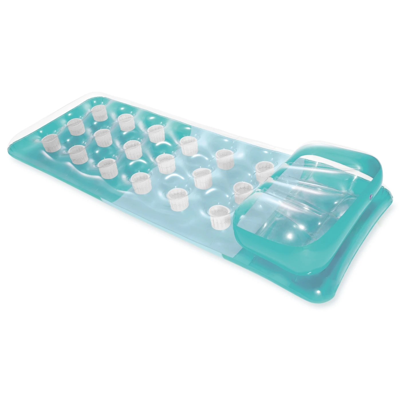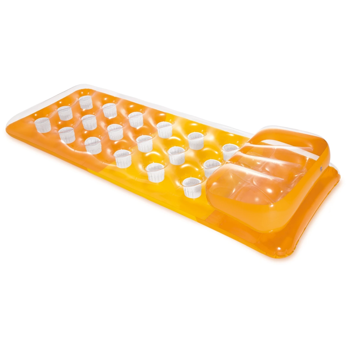 Aufblasbare Liege 18-Pocket Fashion Mats der Firma Intex ist eine bequeme Matratze aus hochwertigem Vinyl. Es verfügt über zwei Luftkammern und ein aufblasbares Kissen unter dem Kopf. Einem gemütlichen Faulenzen auf der Wasseroberfläche steht nichts im Wege! Allerdings kann es sein, dass Sie sich nicht entscheiden können, welche der drei fröhlichen Sommerfarben Ihnen besser gefällt.