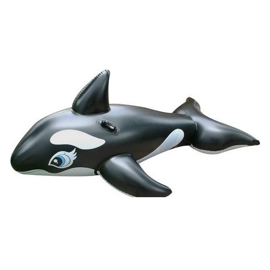 Das aufblasbare Kinderspielzeug Intex Whale Ride-On in Form eines Killerwals ist für Jungen und Mädchen ab drei Jahren geeignet.