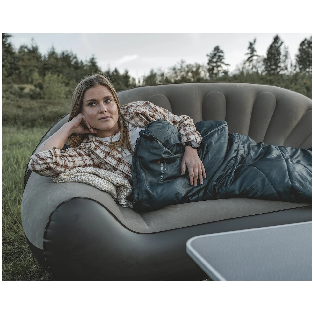 Das stylische und langlebige aufblasbare Sofa Maple Sofa für zwei der Marke Easy Camp bringt den Komfort Ihres Wohnzimmers zum Camping.
