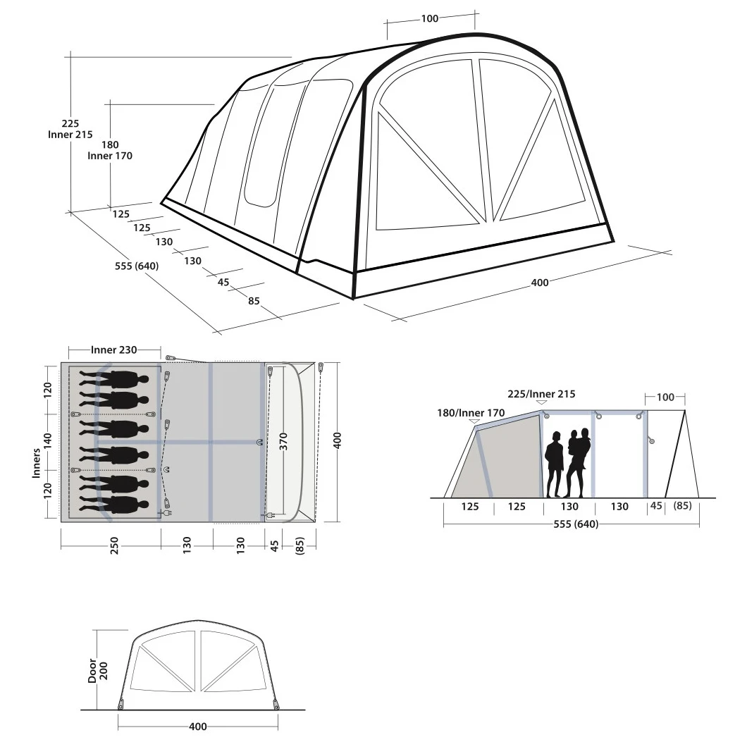 Das Alabama 6 Air TC ist ein aufblasbares Familienzelt aus der Classic Air Kollektion der dänischen Marke Outwell, das Schlafplätze für 6 Personen in drei Schlafräumen, einen geräumigen Vorraum und ein komplett verschließbares Vordach vor dem Eingangbietet.