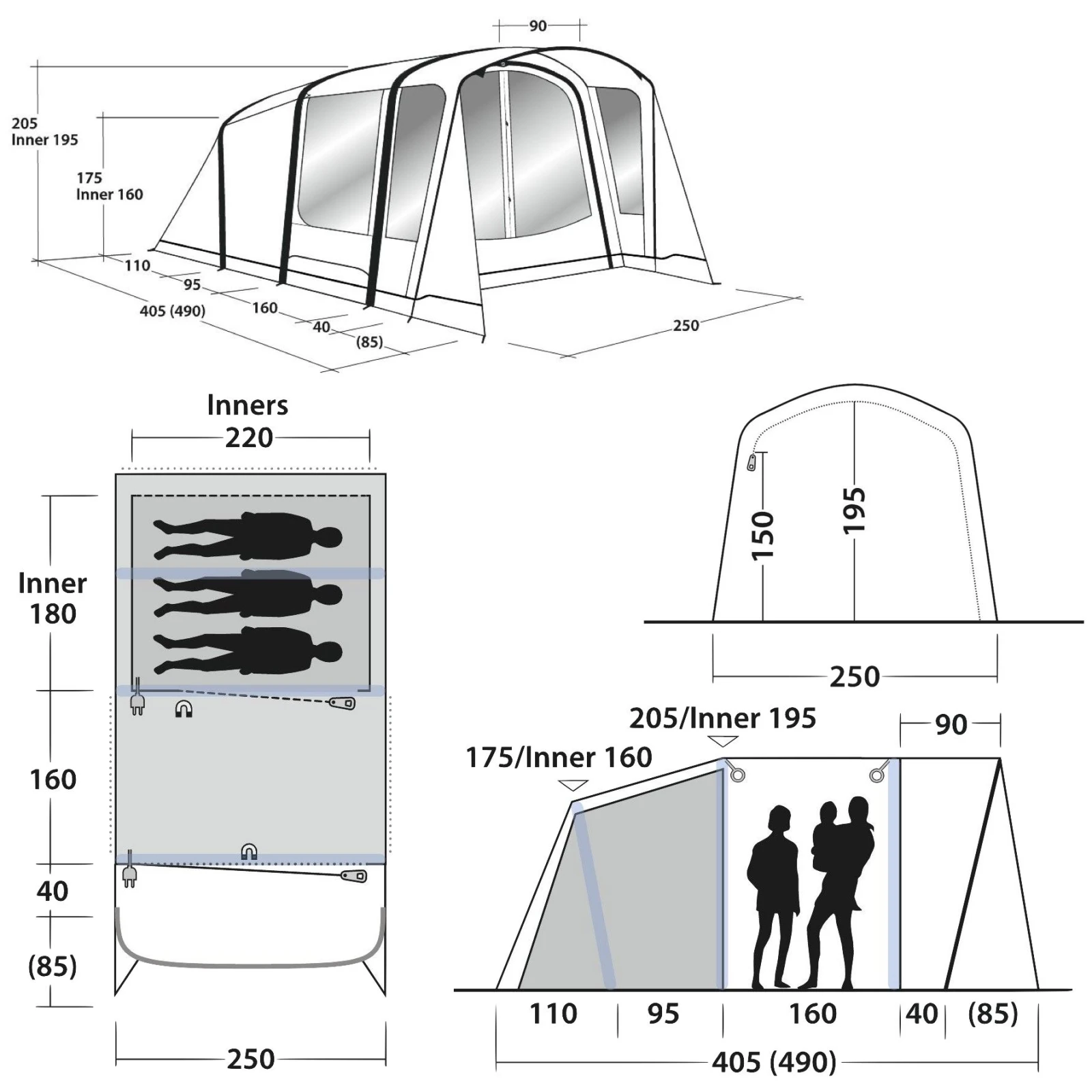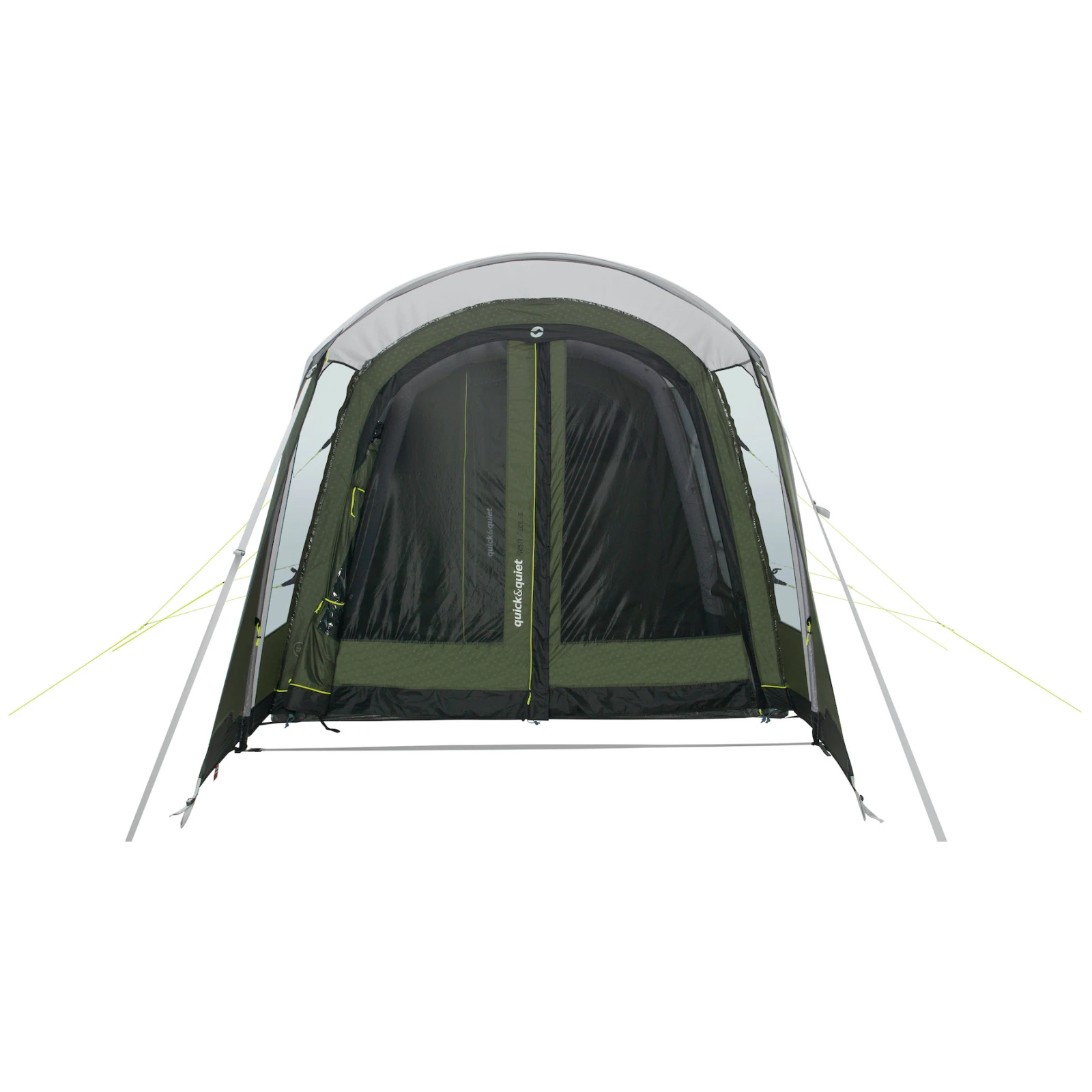 Im Lieferumfang sind eine aufblasbare Pumpe und eine Transporttasche mit Kompressionsriemen enthalten, die das Tragen des Zeltes erleichtern. Wenn Sie Ihren Flur vergrößern möchten, empfehlen wir Ihnen den Kauf der Erweiterung Universalmarkise.