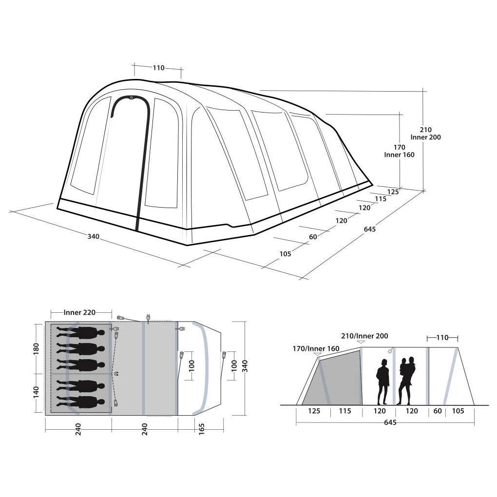 Außerdem sind für das Zelt Air Repair Ersatz-Luftschläuche käuflich zu erwerben, mit denen sich ein beschädigter Schlauch schnell und einfach austauschen lässt. Das Zelt ist kompatibel mit dem Air Repair-Schlauch - Schlauch-Kit 2 (rot) und Schlauch-Kit 3 (gelb). Für maximalen Komfort im Flur sorgt ein Original-Teppich .