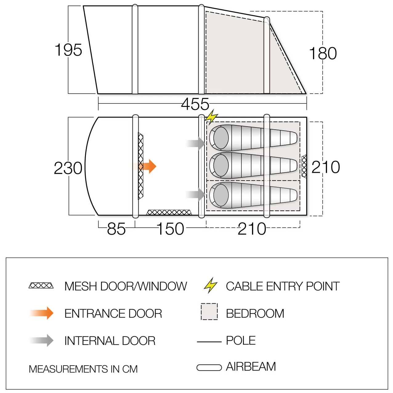 Das Zelt verfügt außerdem über ein raffiniert konzipiertes AirZone-Belüftungssystem , das durch eine verstellbare Belüftungsöffnung mit Moskitonetz an der Rückseite des Zelts ergänzt wird. Zu den weiteren Merkmalen gehören das SkyTrack II®-Aufhängungssystem , Eingänge für Stromkabel, reflektierende Verbindungsmittel, einstellbare Verankerungspunkte, Taschen zur Aufbewahrung von Gegenständen und Schlaufen zum Aufhängen einer Lampe. Zum Zelt gehört außerdem ein praktischer Easy Pack Kompressionsbeutel mit großem Eingang. Das Zelt wurde nach der europäischen Norm EN5912 getestet.