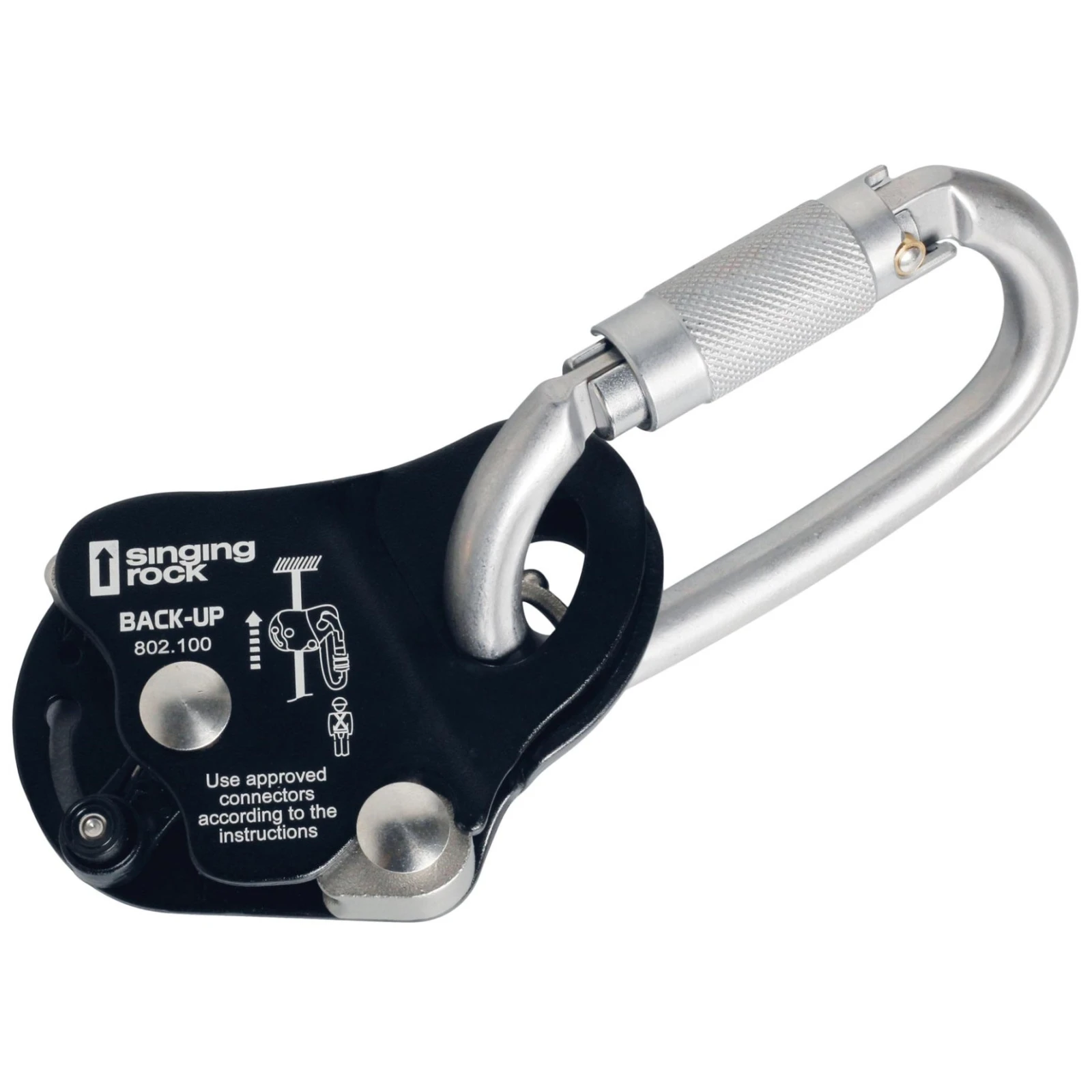 Das mitlaufende Auffanggerät Back-UP Singing Rock verfügt über einen Parkmodus, in dem das Gerät als Positionierungsgerät genutzt werden kann. Der Körper des Fängers ist für eine längere Lebensdauer aus Stahl gefertigt. Selbstverständlich ist die sichere und schnelle Anwendung sowie die bequeme Einhandbedienung.