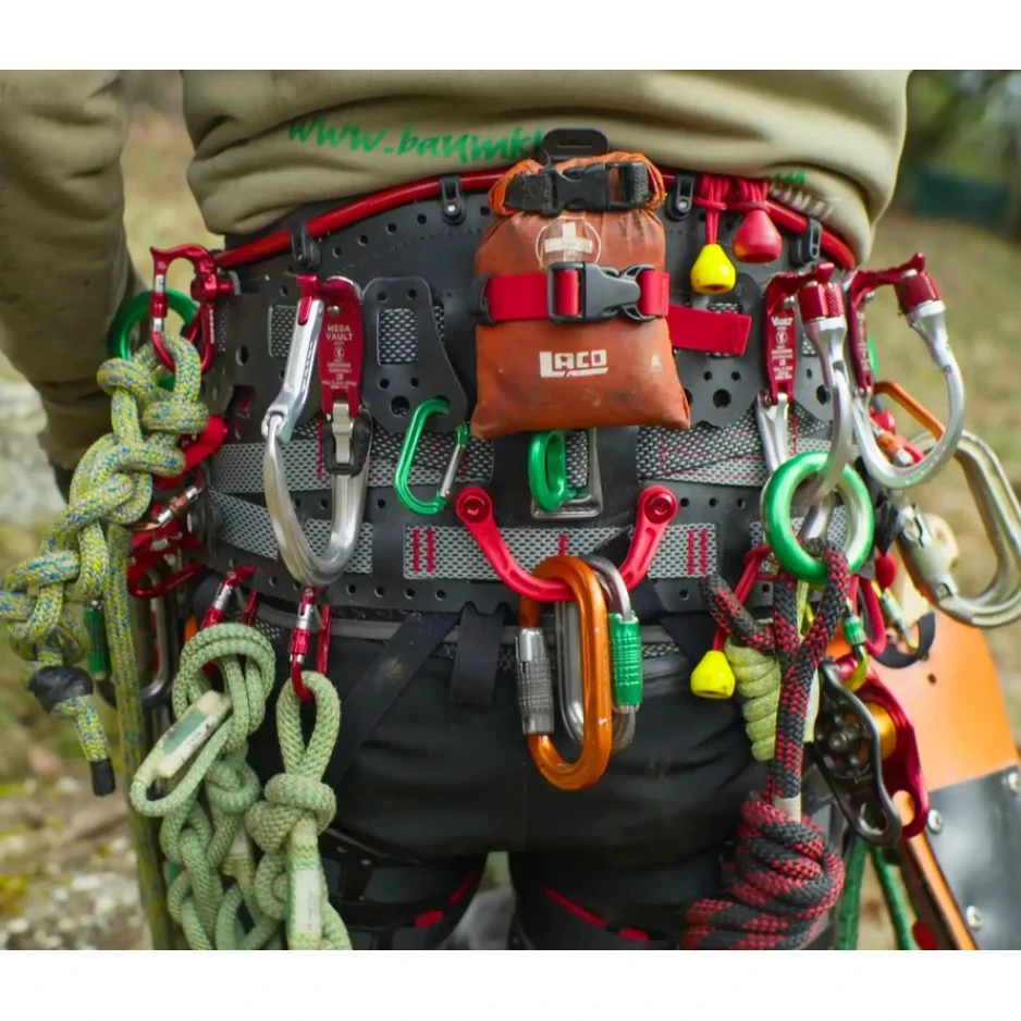 Der modulare Arbeitsgurt Kinisi MAX der Marke DMM bietet maximalen Komfort und Halt. Der Gurt ist mit Trägermaterial verwoben und anschließend mit Schaumstoff gepolstert. Dies sorgt für Komfort , indem das Gewicht des Benutzers auf eine große Fläche verteilt wird. Dieser Strukturriemen wird dann dort verschmälert, wo Masse die Bewegung behindern würde. Die gesamte Hardware ist optimiert , um Textilien zu schonen und den Verschleiß der Riemen zu reduzieren. Ein großer Vorteil des Gurtes ist die Möglichkeit, Polsterung, Gummischlaufen, Gummibänder und Beinschlaufen, Rückengummis, Riemen, Brücken und Verschlüsse auszutauschen.