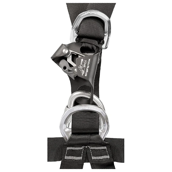 - Vordere Öse zum Anbringen von Abseilgeräten oder zur Positionierung (EN 813, EN 358).