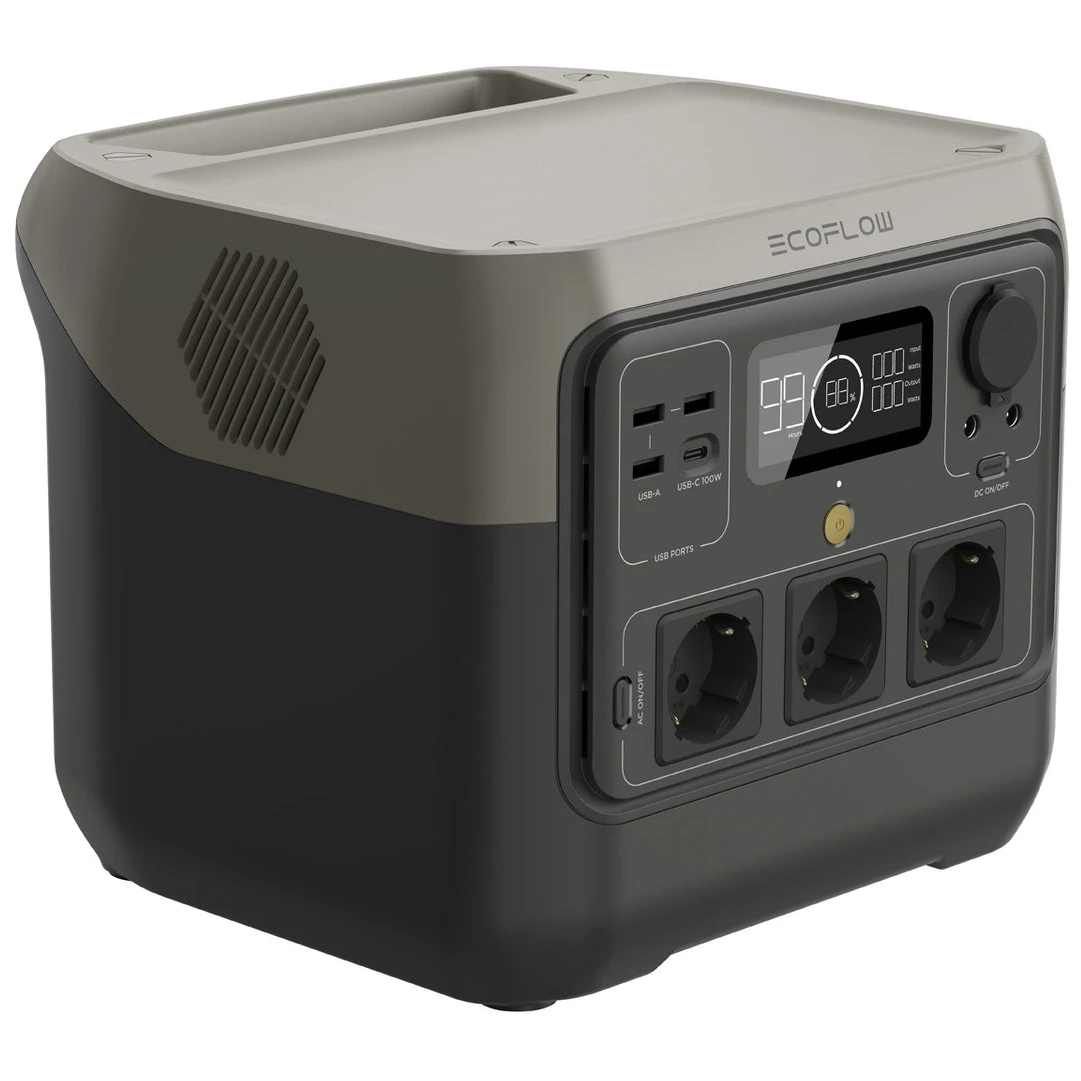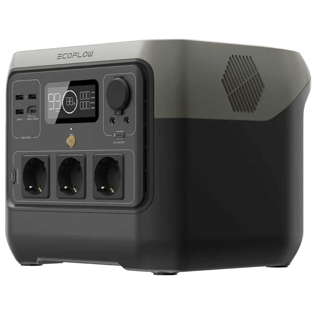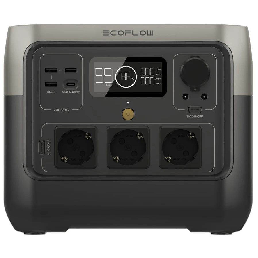 Die leicht tragbare Akkustation EcoFlow River 2 hat eine Kapazität von 768 Wh und eine Dauerleistung von 800 W. Es bietet zahlreiche Anschlüsse für alle Ihre Geräte, darunter drei AC-Steckdosen. Die Station lädt in 70 Minuten von 0 auf 100 % auf. Das Aufladen ist fünfmal schneller als bei Konkurrenzprodukten und 27 % schneller als beim River der vorherigen Generation. Auch das Laden über Solarpanele, im Auto oder mit einer völlig neuen Lademethode über den USB-C-Anschluss ist möglich.