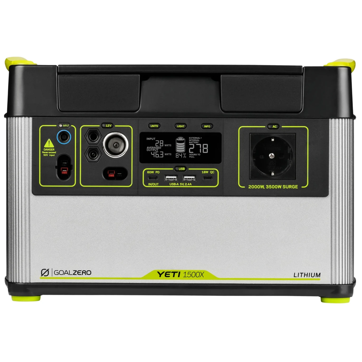Das Yeti 1500X Powerpack ist mit der neuesten Ladetechnologie ausgestattet und verfügt über sieben verschiedene Anschlussoptionen – darunter AC, 12 V und 60 W USB-C PD – um alles von Telefonen bis hin zu tragbaren Kühlboxen mit Strom zu versorgen. Das Gerät lässt sich bequem per WLAN und der Yeti-App Goal Zero auf Ihrem Smartphone fernsteuern und einrichten. Du kannst es an der Steckdose, über USB-C, aber natürlich auch über kompatible Solarmodule Goal Zero aufladen.