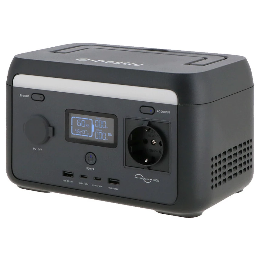 Die Mestic Ladestation MPS-300 ist die ideale Lösung für Outdoor-Enthusiasten, die ihre Geräte beim Camping oder anderen Aktivitäten abseits des Stromnetzes mit Strom versorgen müssen. Mit einer Leistung von 300 W (Spitzenleistung bis zu 500 W) können verschiedene kleine Geräte wie Handys, Tablets oder kleine Campinggeräte mit Strom versorgt werden. Sie ist mit mehreren Ausgangsanschlüssen ausgestattet (AC, DC, USB-A, USB-C) und ermöglicht so das Aufladen einer breiten Palette von Geräten.