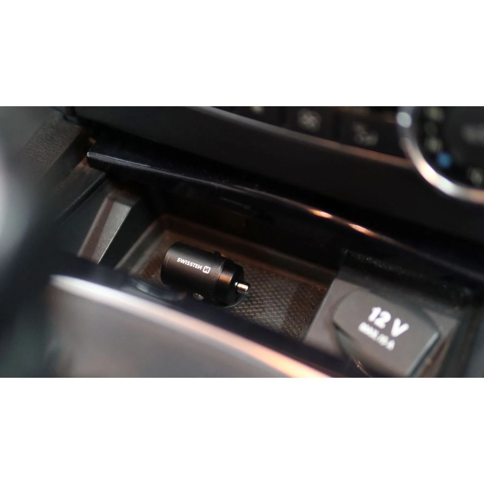 Der Autoadapter Car Charger 45W der Marke Swissten ist dank seiner äußerst kompakten Abmessungen eine stylische und diskrete Wahl für alle, die kein großes Plastikladegerät aus ihrem Zigarettenanzünder herausschauen lassen möchten. Neben seinen Abmessungen beeindruckt der Adapter auch durch seine polierte Metallkonstruktion , die für Langlebigkeit und elegantes Design sorgt. Der Car Charger bietet zwei Ladeports (2x USB-C) mit einer Leistungsabgabe von bis zu 45W, die dank dem PowerDelivery-Protokoll schnelles Laden unterstützen.