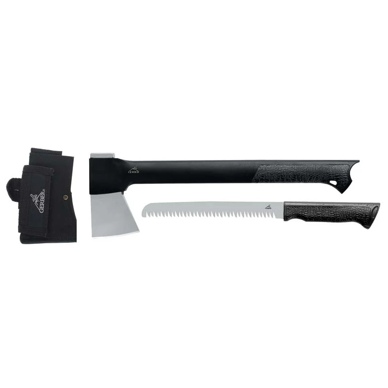 Die Gerger Axt ist sehr gut verarbeitet, der Kopf besteht aus hochwertigem Schmiedestahl und der Stiel aus einer Kombination aus Nylon und Fiberglas und ist für einen stabilen Halt zusätzlich mit Gerber Gator Textur überzogen. Im Gegensatz zu anderen Äxten verbirgt sich darin allerdings noch eine Säge, welche mittels Magnet am Axtkopf befestigt ist und von gleicher Qualität wie die Axt ist.