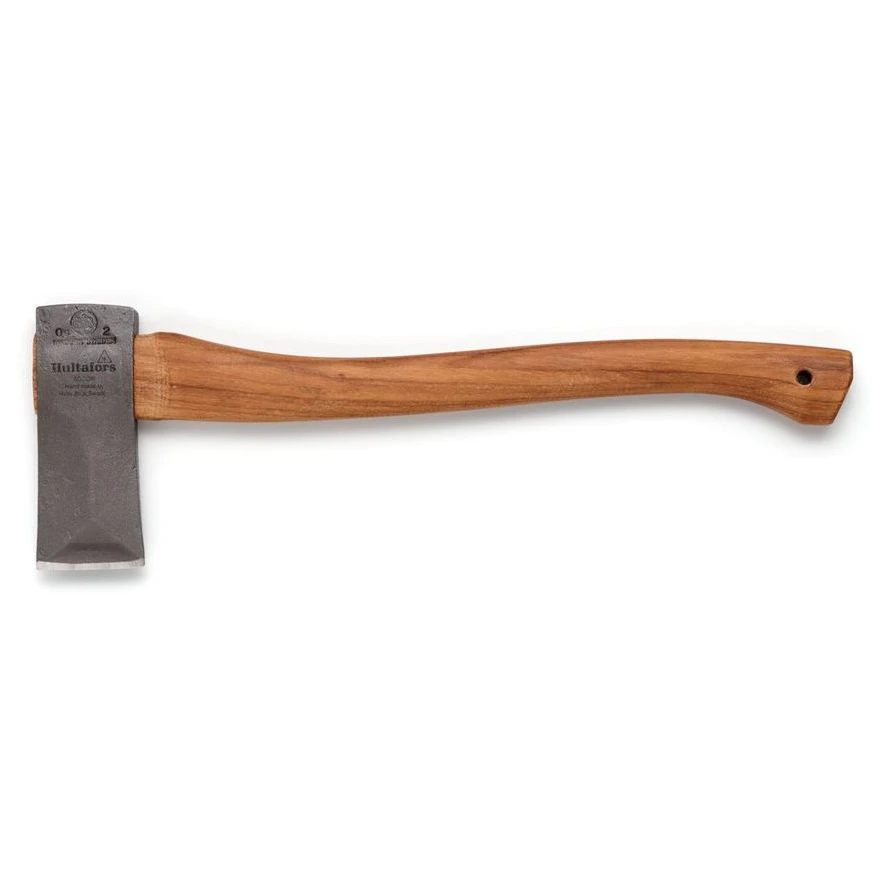 Der Axtkopf besteht aus Hickoryholz, das für seine hohe Haltbarkeit und Stoßdämpfungsfähigkeit bekannt ist, was die Lebensdauer der Axt verlängert und für Komfort beim Arbeiten sorgt. Der Axtkopf wird in der schwedischen Schmiede Hults Bruk von Hand geschmiedet .