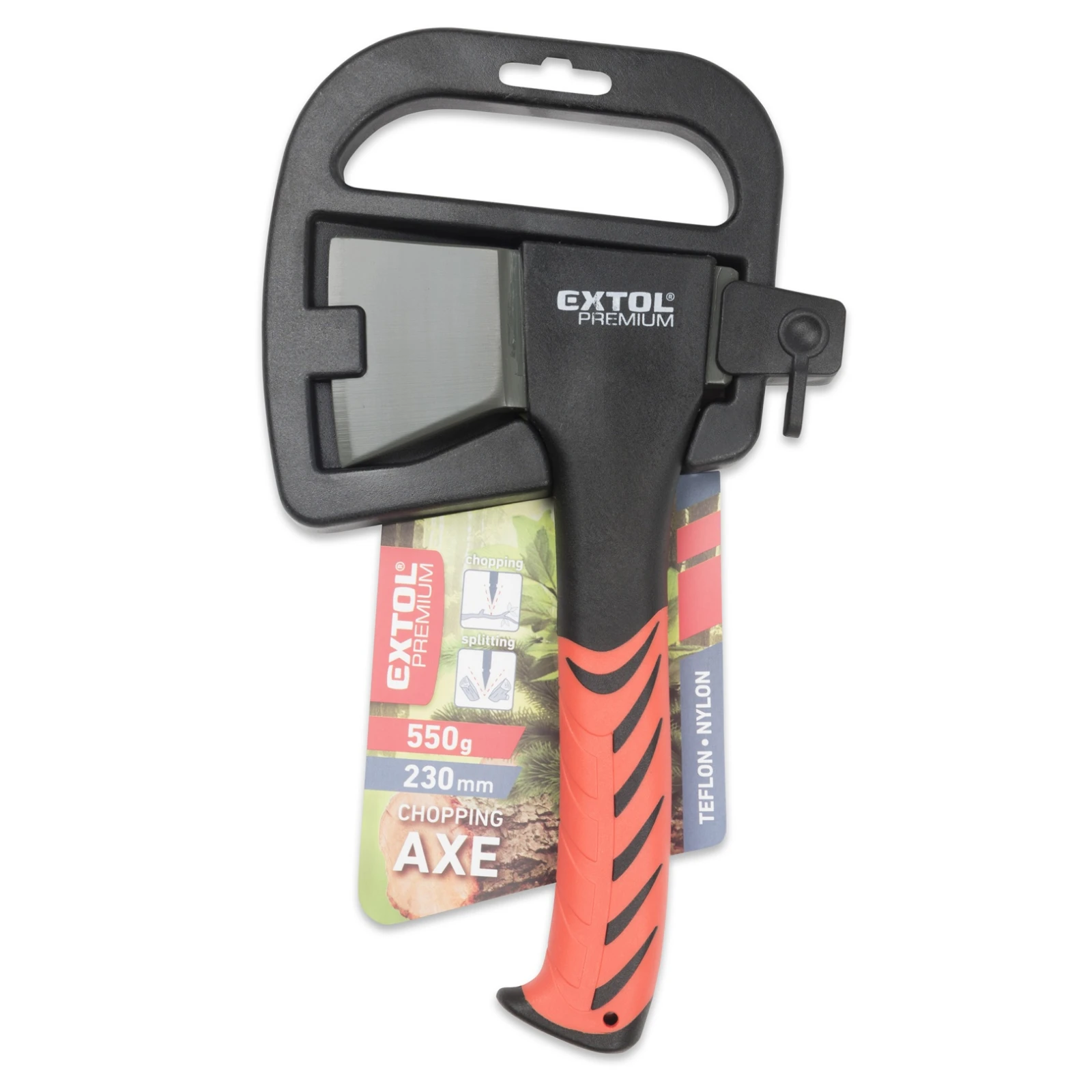 Die Axt Extol Premium kann zu Hause beim Vorbereiten von Holz für den Winter und auf dem Campingplatz beim Vorbereiten eines Lagerfeuers für die Kinder verwendet werden. Die Axt verfügt über einen Nylongriff , der die Vibrationen beim Hacken dämpft und die Belastung der Hand verringert.