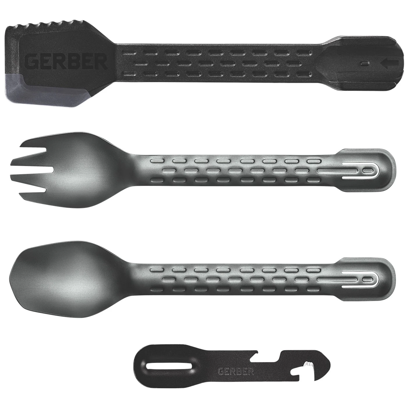 Das multifunktionale Besteckset Compleat der Marke Gerber ist die perfekte Wahl für alle, die ein leichtes und kompaktes Set für ihre Ausflüge in die Natur suchen. Compleat besteht aus Löffel, Gabel, doppelseitigem Spatel und einem Multifunktionswerkzeug, hinter dem sich 4 Zusatzfunktionen verbergen. So können Sie bequem Dosen und Flaschen öffnen, Gemüse schälen oder Fleisch schneiden (insgesamt 10 Funktionen). Das Set lässt sich zudem in eine praktische Zange verwandeln. Auf Reisen werden Sie es sicher zu schätzen wissen, dass sich das Besteck ineinander falten lässt und so wertvollen Platz spart.