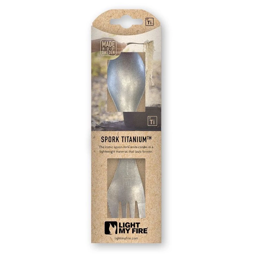 Das Spork Titanium-Besteck (Löffel, Gabel und Messer in einem) der schwedischen Marke Light My Fire ist ein praktisches Werkzeug für jeden Reisenden. Titanium ist ein Besteck aus der Göffel-Familie, das praktisch unzerstörbar ist. Mit etwas Übertreibung kann man sagen, dass man in Schweden aus dem fast unzerbrechlichen Spork einen im wahrsten Sinne des Wortes unzerbrechlichen Spork gemacht hat. Das Besteck ist aus Titan gefertigt, das sich durch seine extreme Festigkeit bei gleichzeitig geringem Gewicht auszeichnet (das Titan-Modell wiegt lediglich 19 g).