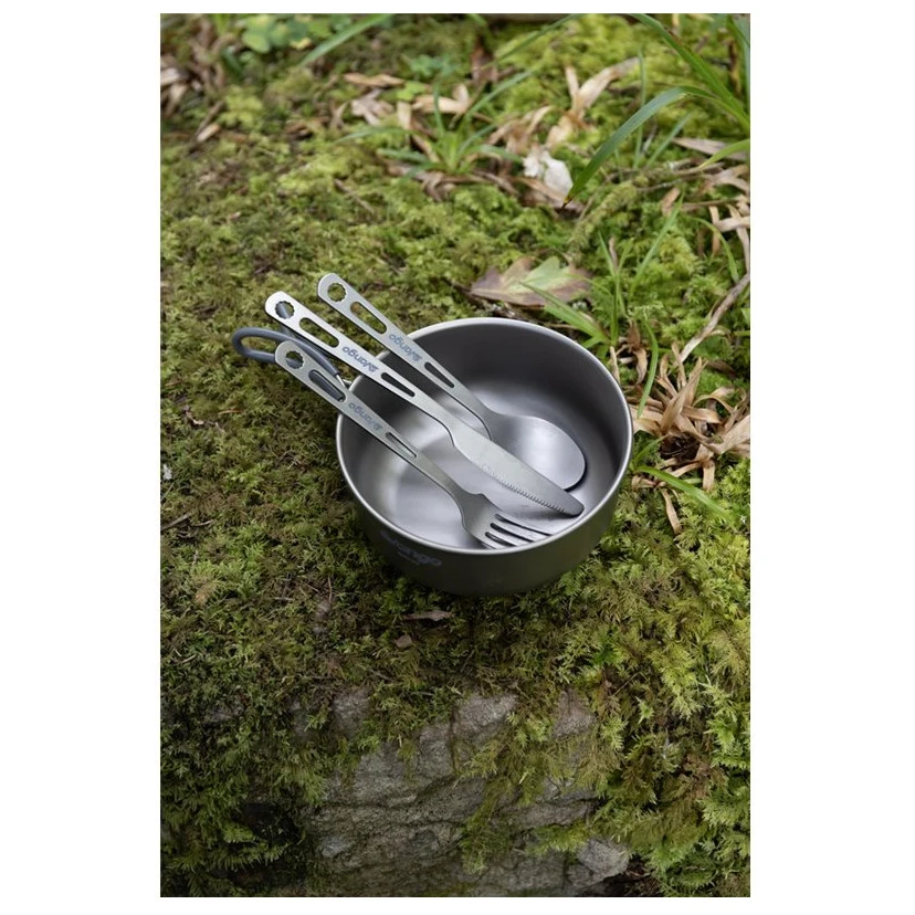 Das Vango Titanium-Besteckset ist ein kompaktes Set mit einem Messer, einer Gabel und einem Löffel aus medizinischem Titan. Dieses ultraleichte Set ist 45 % leichter als Stahl und bietet hervorragende Festigkeit und Haltbarkeit. Titan ist beständig gegenüber hohen und niedrigen Temperaturen, rostet nicht und korrodiert nicht, was eine lange Lebensdauer und einen unbedenklichen Umgang mit Lebensmitteln gewährleistet. Dem Set liegt zur praktischen Aufbewahrung eine Aufbewahrungstasche bei.