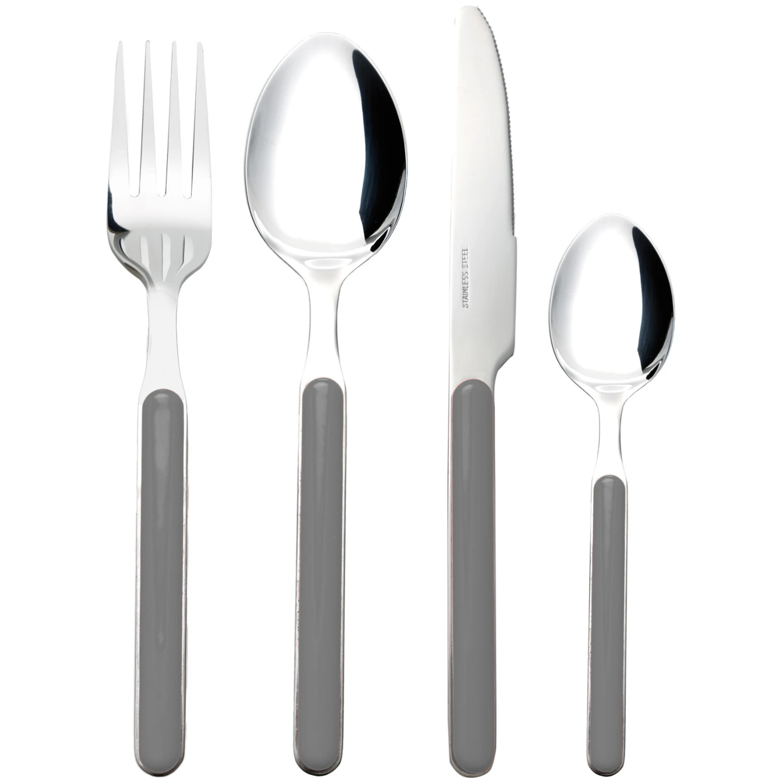 Brunner Delice ist ein komplettes 16-teiliges Besteckset, das auf Komfort und Haltbarkeit ausgelegt ist. Jedes Teil besteht aus langlebigem rostfreiem Stahl mit einer soliden Konstruktion, die Zuverlässigkeit im täglichen Gebrauch gewährleistet. Die ergonomisch geformten Kunststoffgriffe liegen nicht nur optimal in der Hand, sondern verleihen dem Besteck auch eine edle Optik.