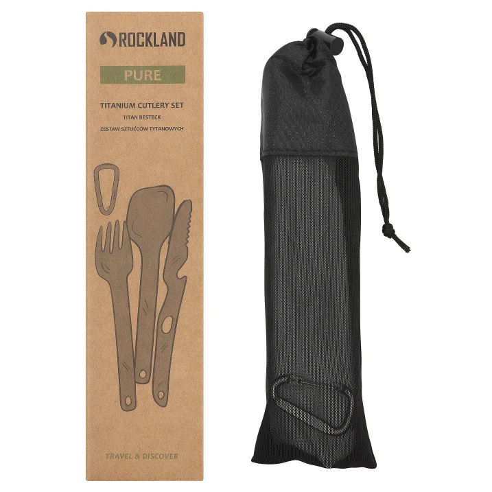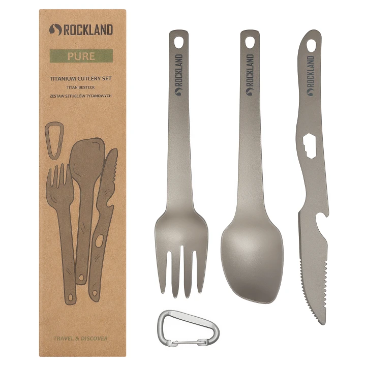 Das Besteckset Titanium Pure der Marke Rockland besteht vollständig aus Titan, welches extrem leicht, äußerst widerstandsfähig und absolut unbedenklich ist. Deshalb wirst du besonders im Outdoor-Bereich viel Freude daran haben, egal ob beim Wandern in den Bergen oder beim Camping am Teich. Das Set beinhaltet eine Gabel, ein Messer und einen Löffel. Die praktische Verpackung sorgt dafür, dass Sie das komplette Set immer griffbereit haben.