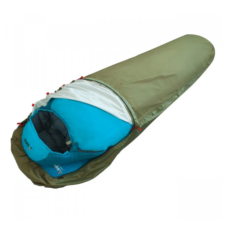 Biwaksack Boval Bag Doppelreißverschluss der rechten Marke Yate mit erhöhter Wasserfestigkeit. Es dient als äußerer Schutz des Schlafsacks bei geplanten und notfallmäßigen Übernachtungen in der Natur. Schützt vor Nässe, Regen und Schmutz, erhöht den Wärmekomfort. Die Nähte sind verschweißt. Die beidseitigen Reißverschlüsse sind mit einer Klappe abgedeckt und ermöglichen eine bequeme Nutzung. Der Reißverschluss auf der rechten Seite reicht bis fast zu den Füßen und ist somit auch mit Schlafsäcken mit rechtsseitigem Verschluss kompatibel.