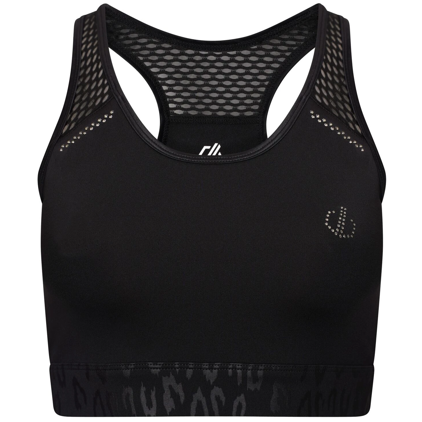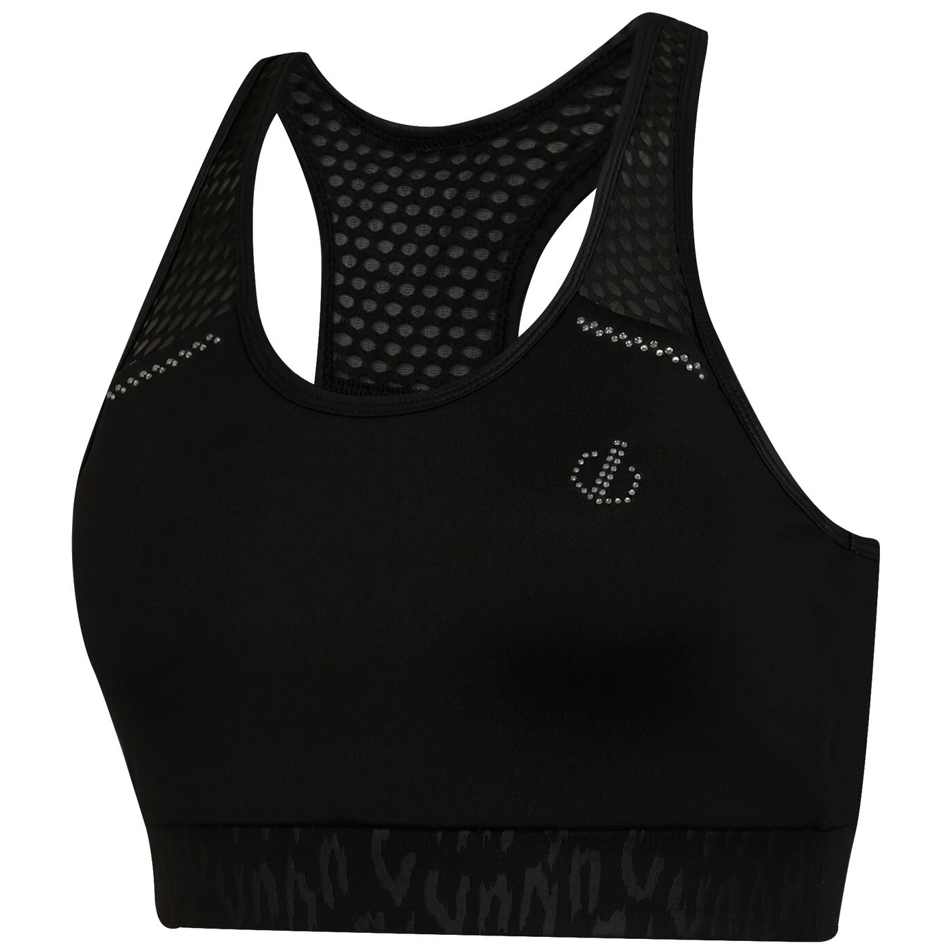 Der No Excuse Bra der Marke Dare 2b besteht aus dem extrem weichen und schnelltrocknenden Stoff Q-Wic, der Schweiß effektiv und schnell von der Haut ableitet. Das verwendete Material ist mit Swarovski-Kristallen verziert und bietet zusätzlich Mesh-Einsätze für maximale Atmungsaktivität. Hochglänzendes Textilgewebe an Halsausschnitt und Armausschnitten.