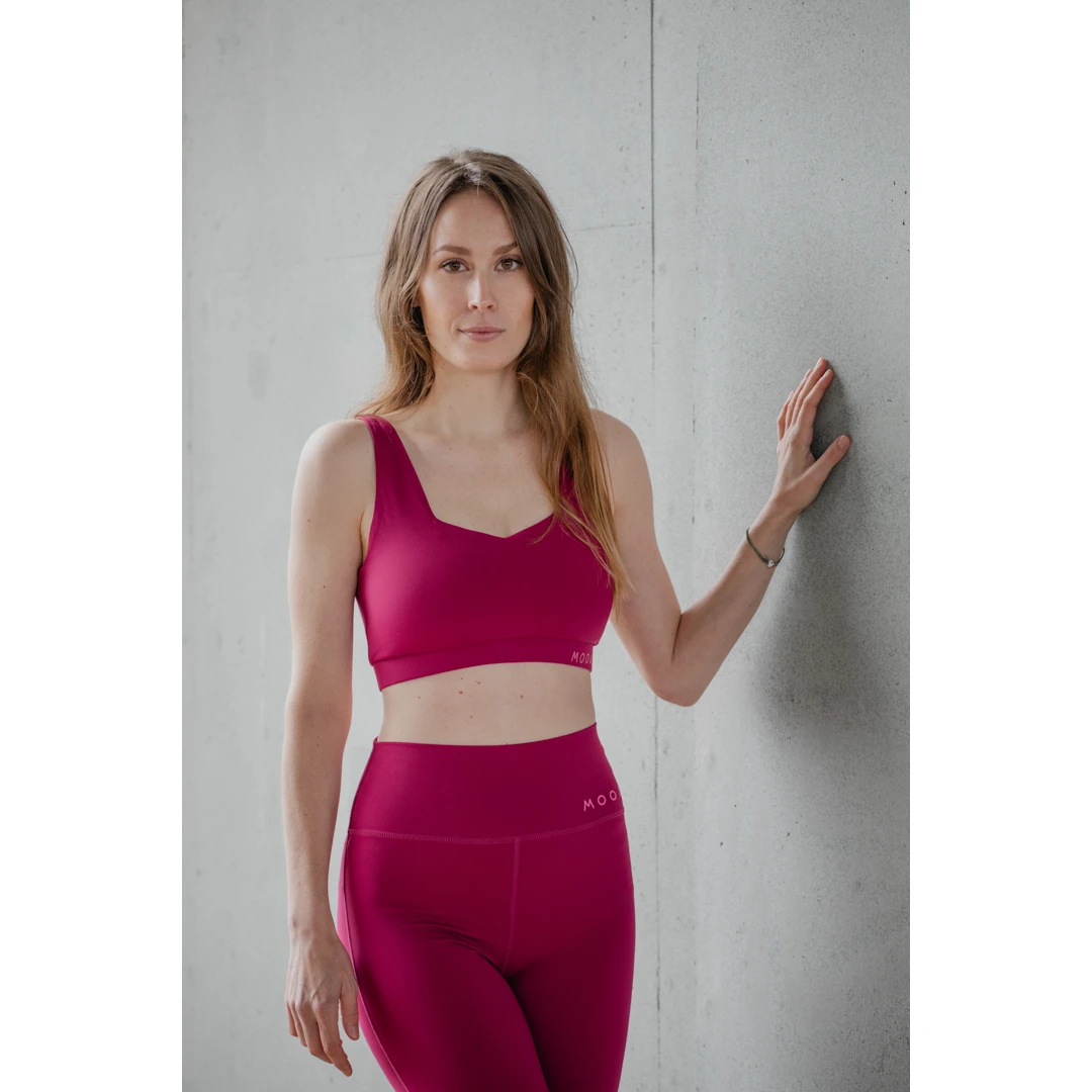 Damen Sport-BH MOOA Elja bietet mittleren Halt bei jeder sportlichen Aktivität. Der BH besteht aus dem funktionellen Silk Feel-Material, das ihn hoch atmungsaktiv macht und schnell trocknet. Der breite Gummirand sorgt für höchsten Tragekomfort und der BH bleibt immer dort, wo er sitzt. Es ist schön, dass man für mehr Komfort eine Polsterung einfügen kann. Flache Nähte verhindern Hautirritationen bei Anstrengung. Eine großartige Wahl für Yoga, Pilates, Fitness und andere sportliche Aktivitäten.