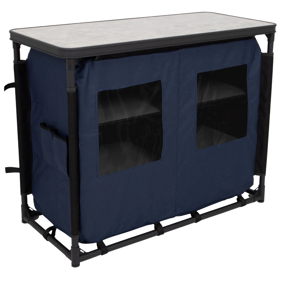 Auf den sechs festen Ablageflächen haben Sie immer ausreichend Platz für Geschirr, Lebensmittel und Küchenutensilien. Die Abdeckung aus 600D-Polyester sorgt für Verschleißfestigkeit und Schutz der aufbewahrten Gegenstände.