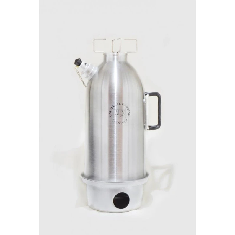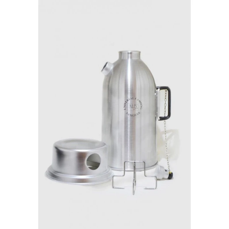 Der Alb-Samowar ist ein Mehrzweck-Campingkocher aus Aluminium. Dank überdachter Feuerstelle auch für widrige Witterungsbedingungen geeignet. Durch die Öffnung können Sie ihn ganz einfach in der Feuerstelle platzieren. Als Brennstoff können trockenes Gras, Zweige, fester Alkohol oder natürlicher Feueranzünder verwendet werden.