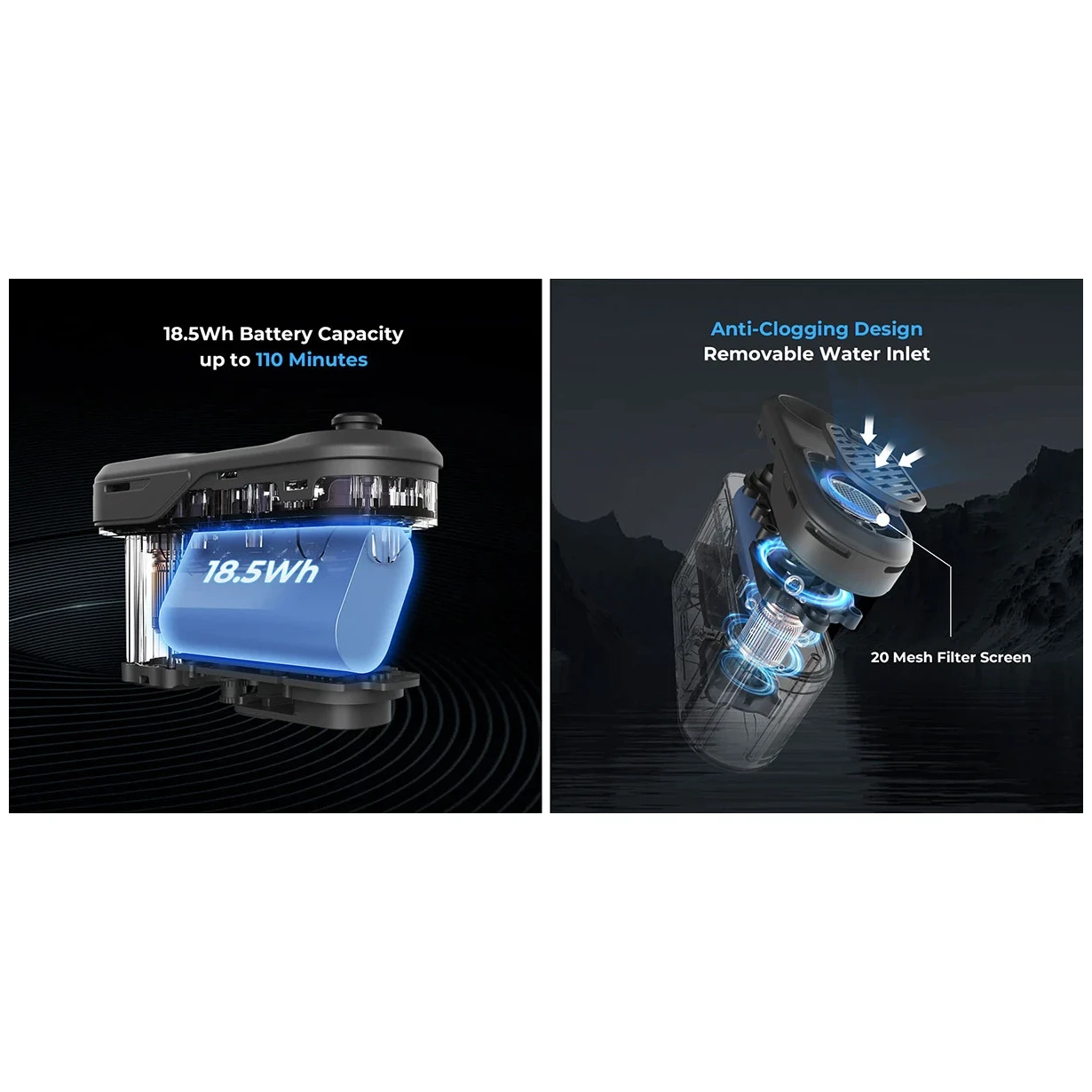 - Betriebsdauer: bis zu 110 Min.