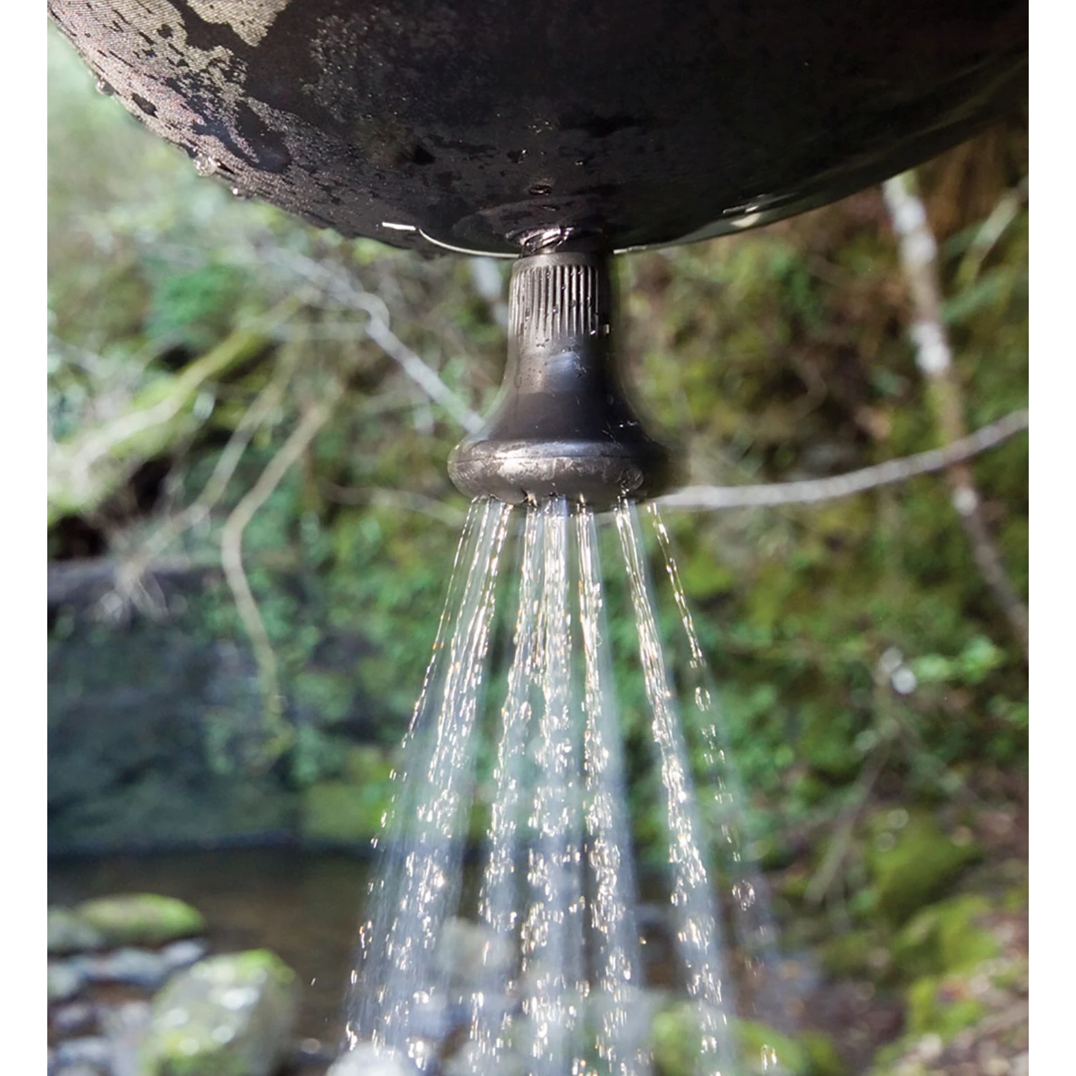 Die schlichte Taschendusche Sea to Summit ist mittels 6 m langem Kabel zum Aufhängen geeignet. Die Dusche besteht aus wasserdichtem Material mit verschweißten Nähten und einem Rollverschluss, wie bei Paddeltaschen. An der Unterseite befindet sich eine drehbare Kappe mit Regulierung der Duschintensität. Mit einem Volumen von 10 l können Sie bei vollem Strahl etwa 8,5 Minuten duschen.