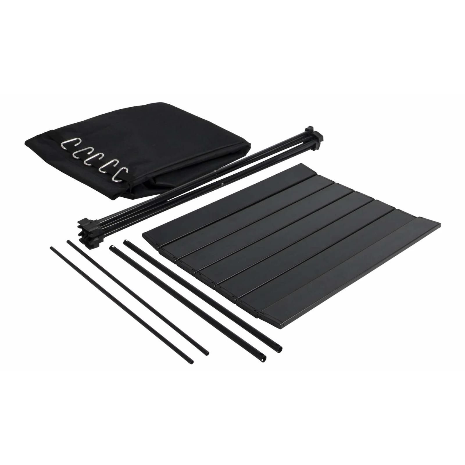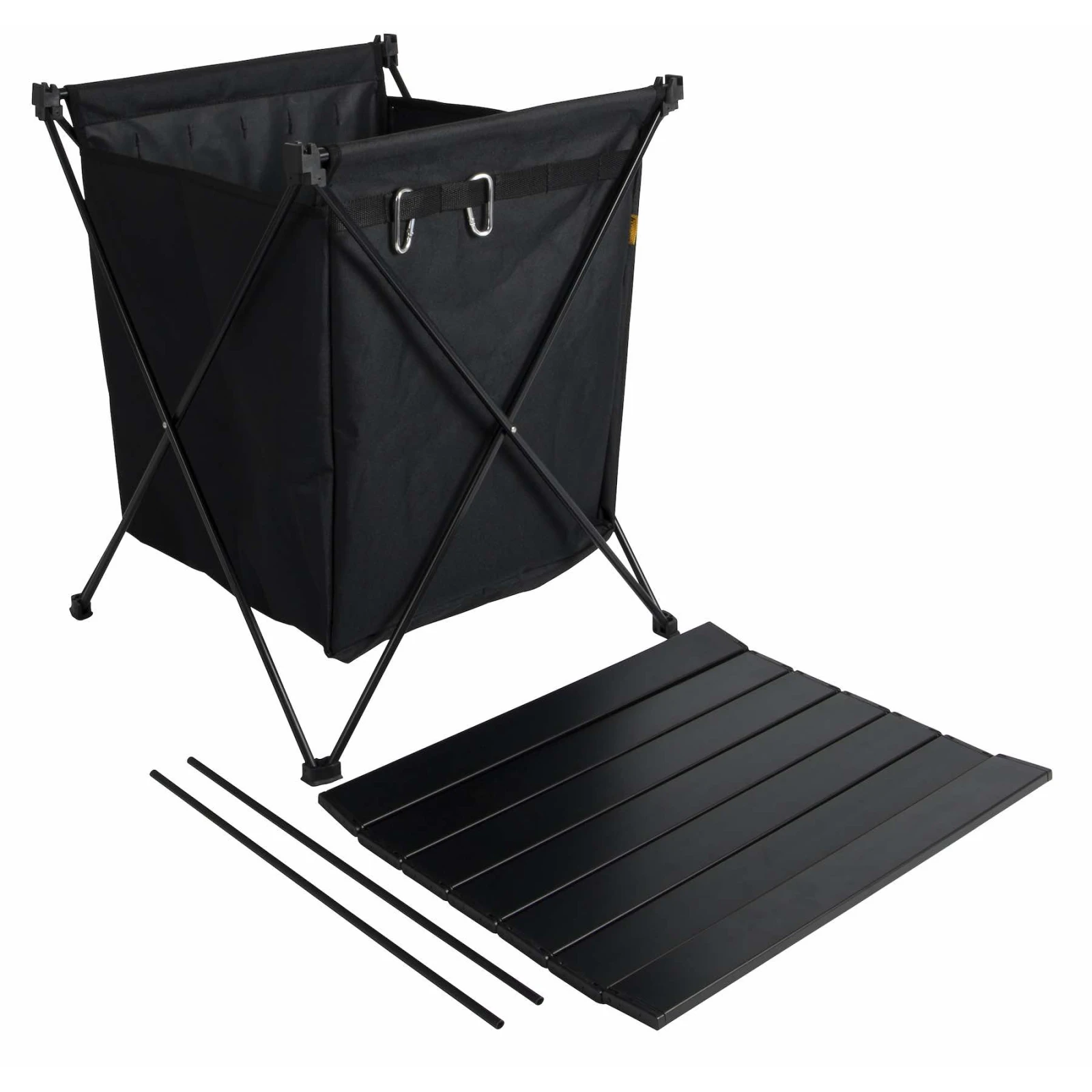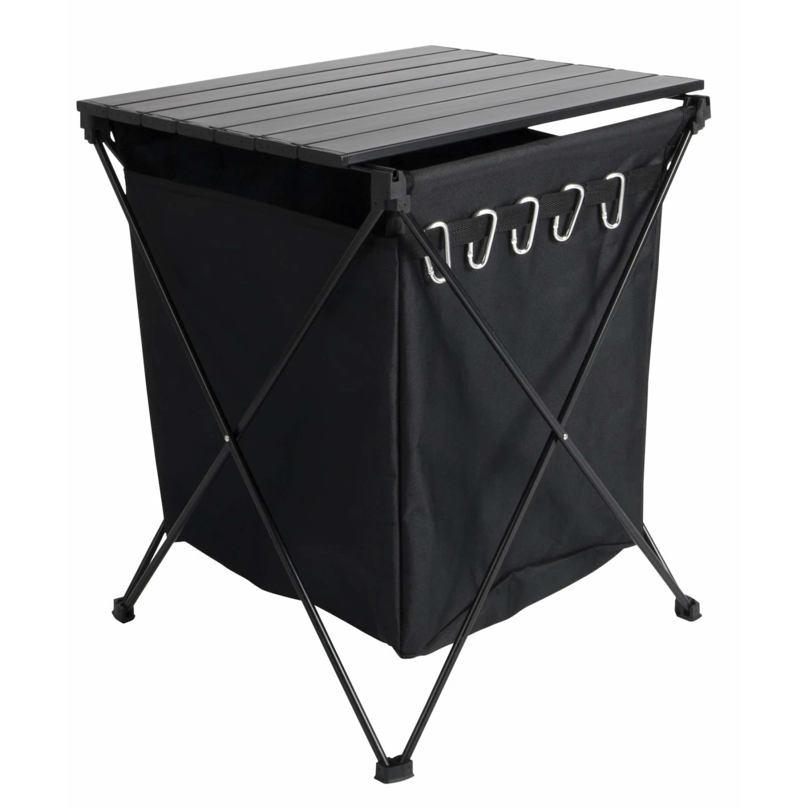 Stylischer Klapptisch Bo-Camp Arion mit Stauraum und industriellem Look. Kann als Tisch oder als Schrankverwendet werden. Der Tisch ist aus sehr leichtem Aluminium gefertigt und eignet sich daher ideal zum Mitnehmen. Das Ablagefach ist aus robustem Nylon gefertigt und eignet sich sehr gut zur Aufbewahrung von Zeitschriften, Büchern usw. Die Tischplatte ist hitze- und wasserbeständig. Inklusive Aufbewahrungstasche und Aufhängehaken.