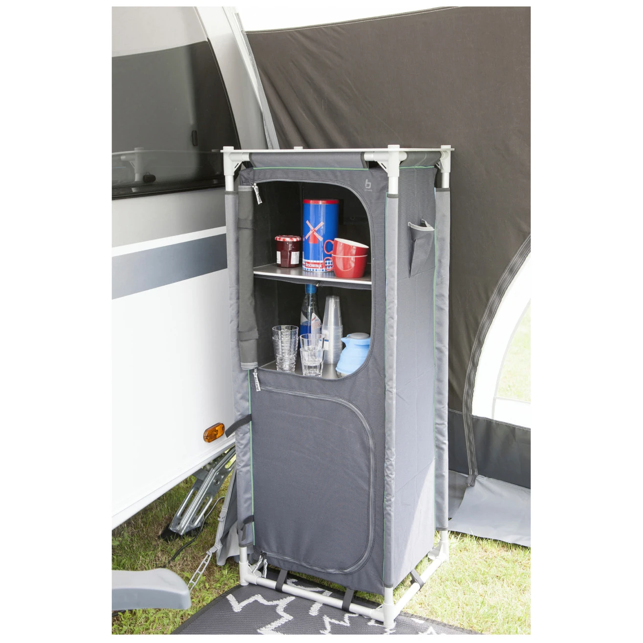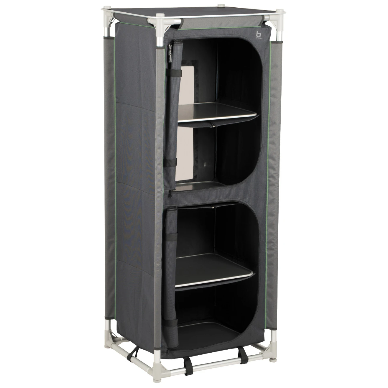Du willst beim Camping alles übersichtlich organisiert und immer griffbereit haben? Emerald High ist für Sie da. Dieser luxuriöse und extrahohe Schrank bietet Ihnen 4 geräumige Regale und 2 Seitentaschen, in denen Sie alles unterbringen können, was Sie brauchen – von Kleidung bis hin zu Küchenutensilien.