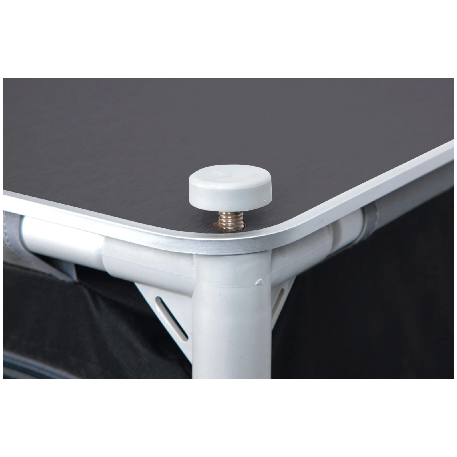 Der Aluminiumrahmen, strapazierfähiges 600D Polyester und die stabile MDF-Platte machen diesen Schrank zu einem zuverlässigen Begleiter für viele Saisons. Und außerdem sieht es toll aus.