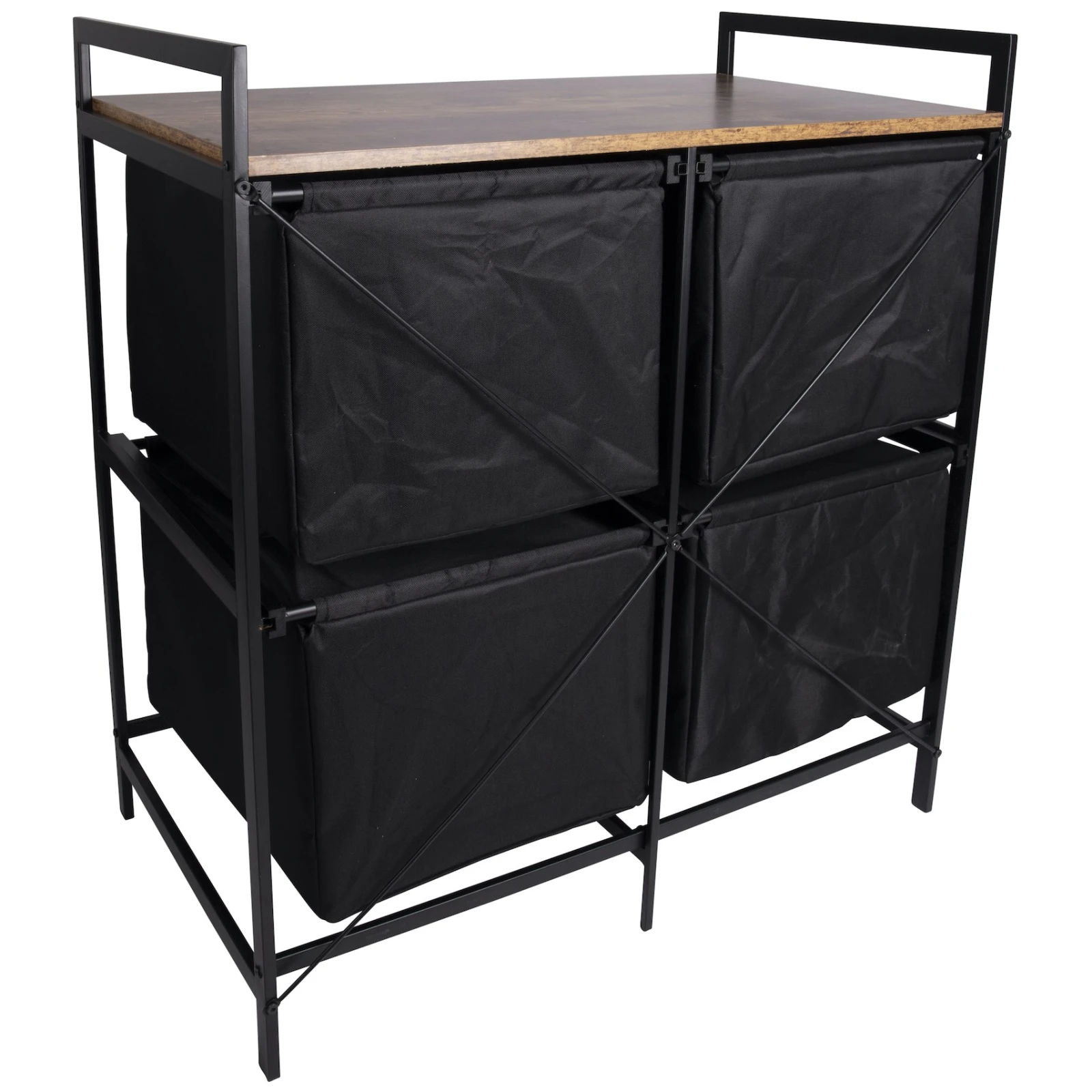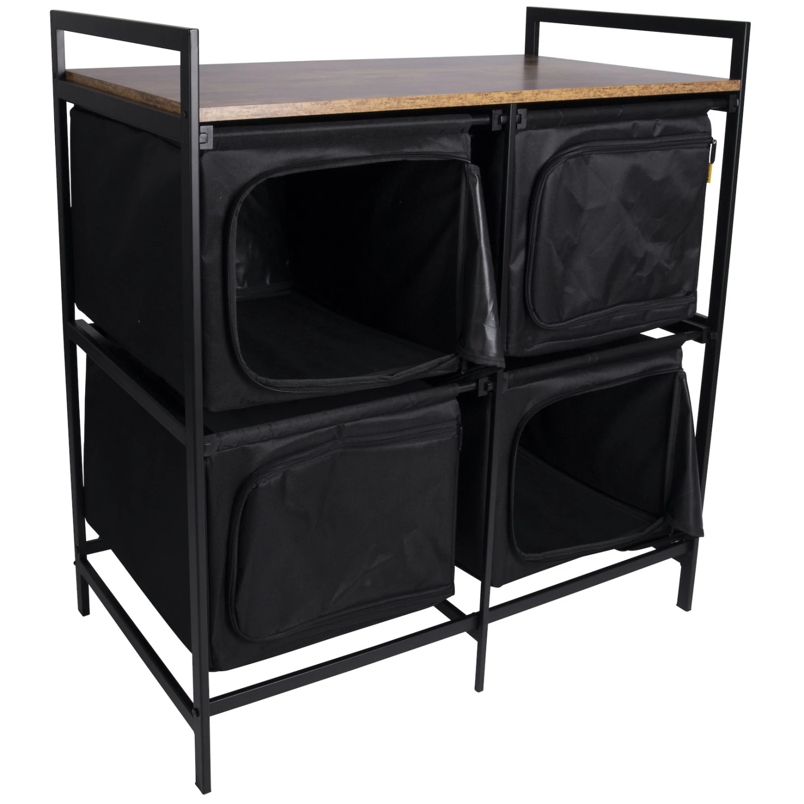 Stilvoller Schrank Bo-Camp Lawton im Industrie-Look mit Holzplatte. Der Schrank ist mit 4 Ablagefächern mit Reißverschluss ausgestattet. Darüber hinaus verfügt der Schrank über einen stabilen Stahlrahmen und eine zweifarbige Schale aus 600D-Polyester. Ideal für Garten, Haus oder Zelt. Darüber hinaus ist der Schrank komplett abnehmbar.