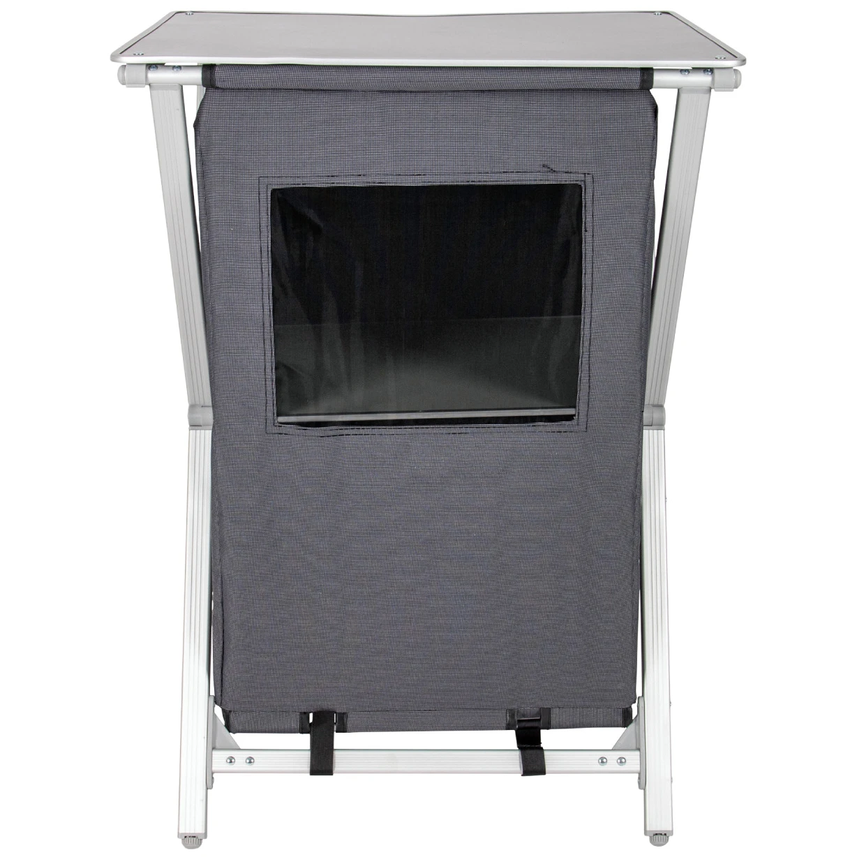 Egal ob du einen Wochenend-Campingausflug oder einen längeren Urlaub planst, der Ontario Quick-up Campingschrank der Marke Bo-Camp ist dein toller Helfer um Ordnung zu halten. Es ist kompakt, stabil und dank des Faltsystems einfach aufzubauen.