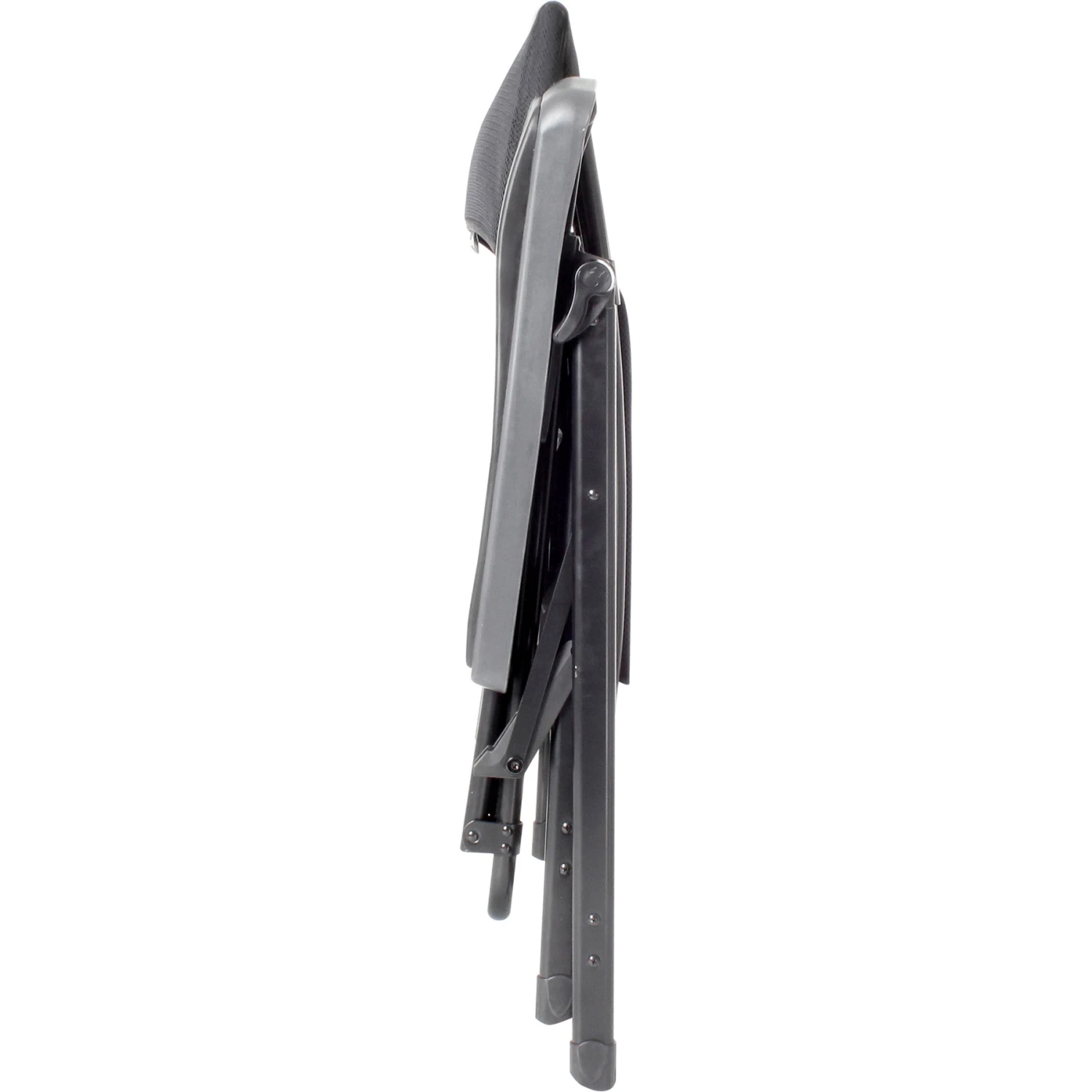 Der Stuhl besteht aus leichtem und langlebigem Aluminium mit einem ovalen Profil, das die Festigkeit der Struktur erhöht. Ergänzt wird der Rahmen durch den hoch atmungsaktiven und haptisch angenehmen Stoff 3Durafeel, der in Kombination mit der Polsterung ein angenehmes Sitzgefühl garantiert. Die kompakten Abmessungen nach dem Zusammenklappen gewährleisten bequemes Tragen und Aufbewahren.