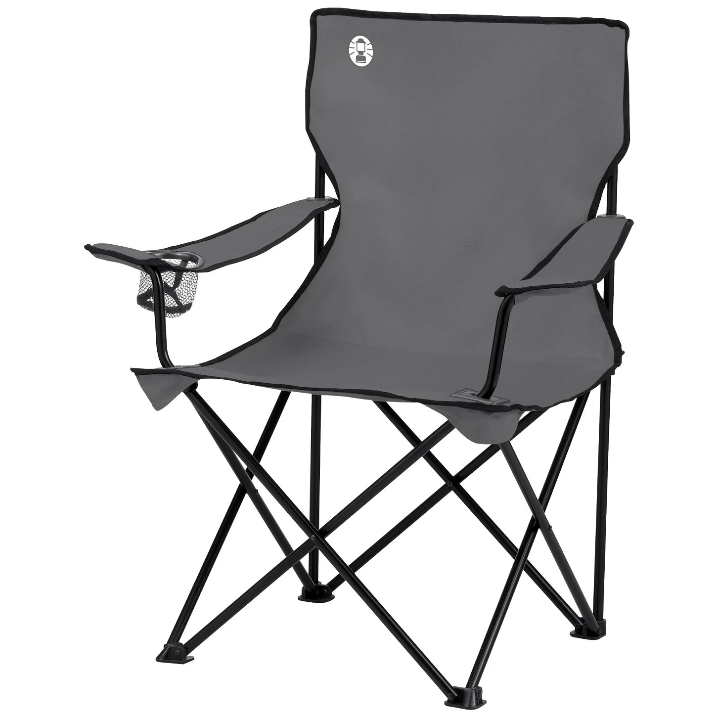Multifunktionaler Klappstuhl Der Standard Quad Chair der Marke Coleman ist dank seiner großzügigen Maße auch für alle geeignet, die es gerne „ausstrecken“. Dank der bewährten stabilen Konstruktion lässt sich der Stuhl leicht zusammen- und auseinanderfalten und nimmt im zusammengeklappten Zustand nur wenig Platz ein. Auch die Pflege der Abdeckung ist, vor allem dank der PVC-Antifouling-Beschichtung, sehr einfach. Der Stuhl wird mit einer Tragetasche geliefert, die den Transport erleichtert.